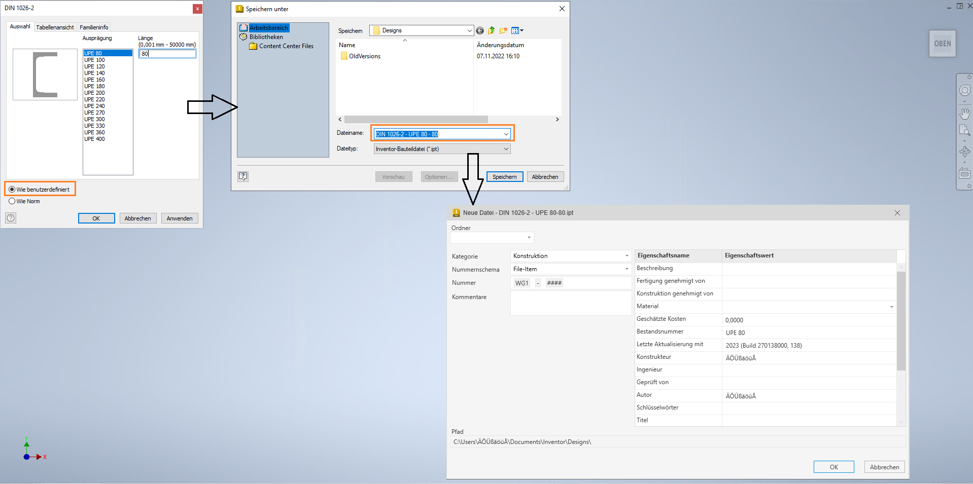 Sie können benutzerdefinierte Inhaltscenter (CC) verwenden, um den Namen, die Eigenschaften usw. beim Hinzufügen von Bibliotheken in Inventor-Baugruppendateien zu ändern.