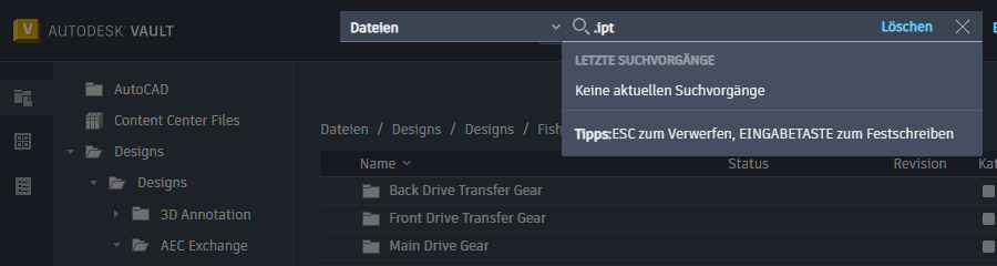 Verwenden Sie Einfache Suche, um nach einer Eigenschaft zu suchen, die den Suchbegriff enthält. Mit Einfache Suche können Sie Objekte in verschiedenen Arbeitsbereichen durchsuchen.