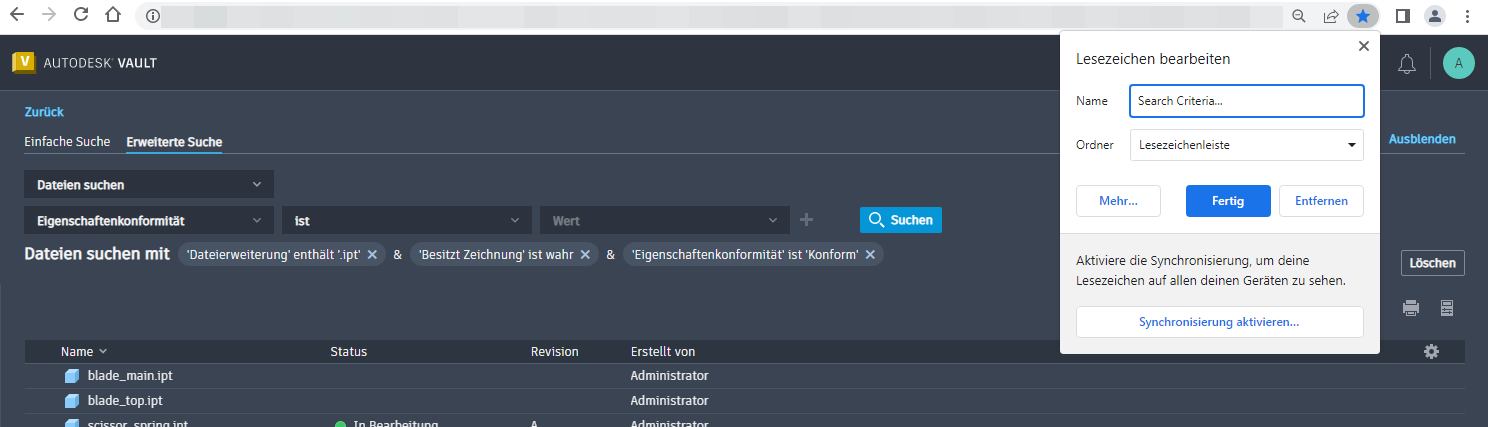 Sie können die erweiterte Suche mit den gewünschten Kriterien zu Ihren Lesezeichen im Webbrowser hinzufügen, um sie schnell wiederzuverwenden. Klicken Sie einfach auf das Lesezeichen, um Ihre Auswahl erneut zu verwenden. Dies kann besonders bei komplexen Abfragen nützlich sein, die Sie wiederholt verwenden möchten.