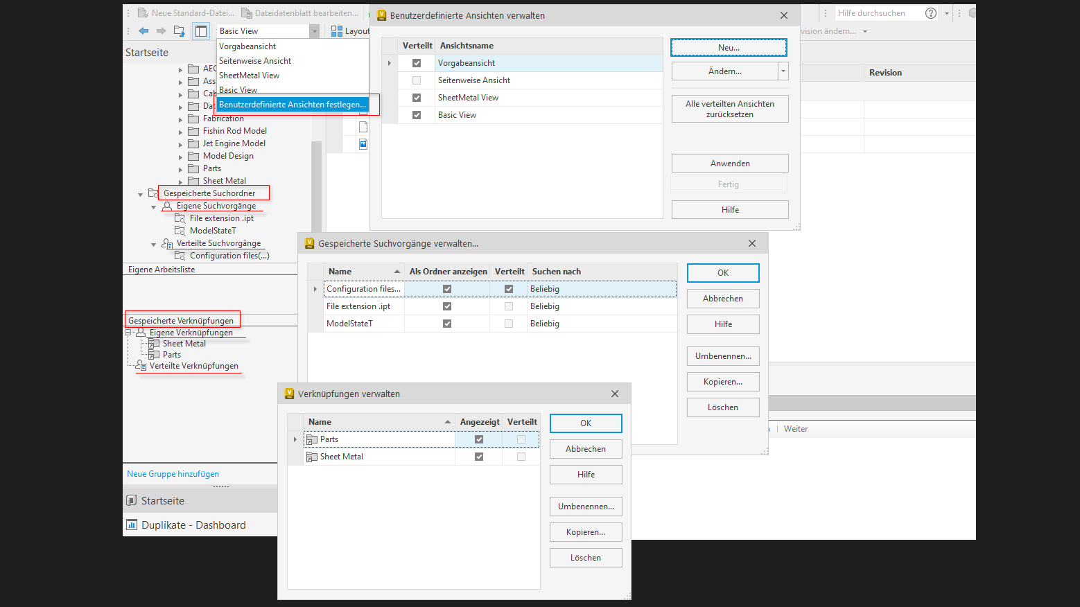 Als Administrator können Sie nun grundlegende Konfigurationseinstellungen wie Rasteransicht, gespeicherte Suchvorgänge und Verknüpfungen auf den Client-Computern zentral verwalten und einrichten. Dies sind die vorgegebenen verteilten Einstellungen, die konfiguriert werden, wenn Benutzer auf ihr System zugreifen. Benutzer können die verteilten Einstellungen lokal kopieren oder ändern, um ihre Aufgaben zu optimieren und die Effizienz zu verbessern.