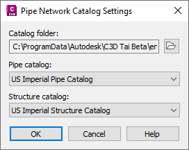 Figure 2: Dialog box for specifying the pipe network catalogs