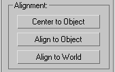 Each of the buttons in the Move/Rotate/Scale group box highlights when active. This determines which part of the object is affected by the three buttons in the Alignment group (see following), as well as the Transform and Align commands on the main toolbar.