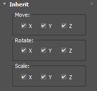 The Inherit rollout limits which transforms a child inherits. It constrains the links between a selected object and its parent for any axis of position, rotation, or scale.
