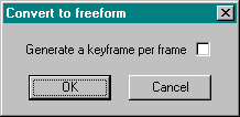 When you click Convert on the Biped rollout of the Motion panel, a Convert To dialog displays: Convert to Freeform or Convert to Footsteps, depending on the animation method of the currently loaded motion.