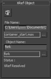 When you've selected an XRef object in a scene, the XRef Object rollout appears along with the Proxy Object rollout on the Modify panel. The modifier stack for the XRef object simply displays “XRef Object.”