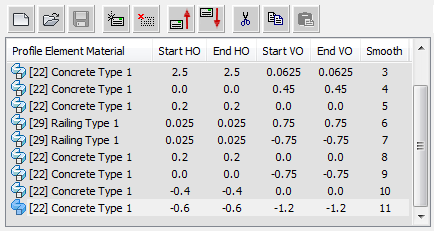 A swept object definition can be saved to a text-based Swept Object Style (SOS). Each style contains a set of elements. Each element represents a single surface within the swept object. Each element features adjustable (and variable) horizontal and vertical offsets and an independent material channel definition. By default, swept objects use the CivilViewSurfaces material.