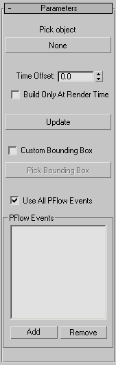 Lets you specify Particle Flow events to be affected by Mesher.