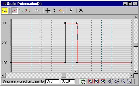 - The two curves are red for X-axis scaling and green for Y-axis scaling.