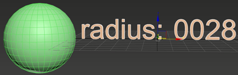 - In the TextPlus Parameters rollout, edit the Text field to display the value's label name (eg. "Radius: ").