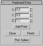Lets you use a spline as the wall path. Click this, and then click a spline in the viewport to use as the wall path. 3ds Max uses the spline as the path along which to apply the wall object. 3ds Max doesn’t immediately recognize 2D Shapes from a linked AutoCAD drawing. To recognize Shapes from a linked AutoCAD drawing, edit the Shape with Edit Spline from the Modify panel.