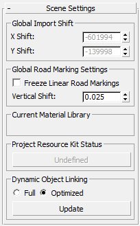 Sets X and Y shift values for incoming imported data. This can be useful when source data has been generated in a real-world coordinate system. Such coordinate systems are unsuitable for use in 3ds Max and can severely affect system accuracy and performance.