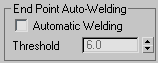 - When Automatic Welding is turned on, an end point vertex that is placed or moved within the threshold distance of another end point of the same spline is automatically welded. This feature is available at the object and all sub-object levels.