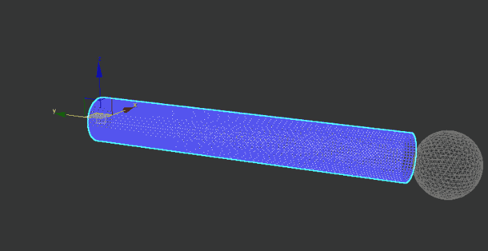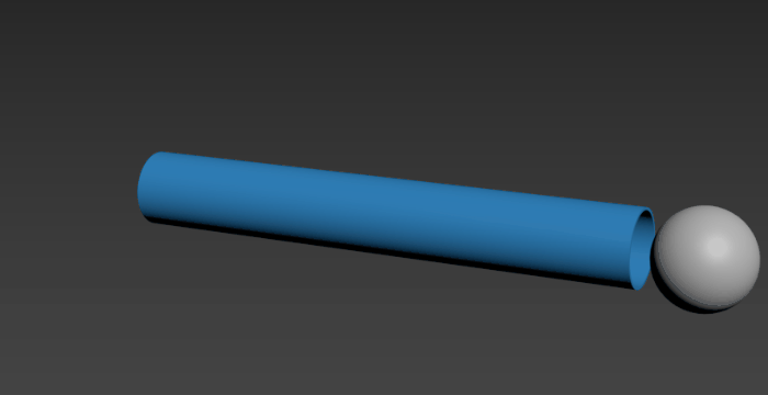 In this example, a geosphere acts as the target object, travelling through the cylinder.