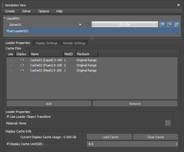 Use the Loader Properties panel to change settings for any existing Fluid Loader objects.