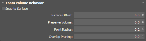 - Sets the rate per-second that foam particles lose density. Foam particles at and above the liquid surface will dissipate. Particles under the liquid surface do not dissipate.