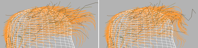 This is useful for creating different types of hair shapes. For example, to make a braid, you would comb hair down some straight tubes, and then lock the vertices to the tubes. Then, in 3ds Max, when you twist the tubes, the hairs will follow. Locked vertices are no longer dynamic, although they will follow whatever the surface does, but if other vertices on the same guides aren't locked, they can still move freely, as usual.