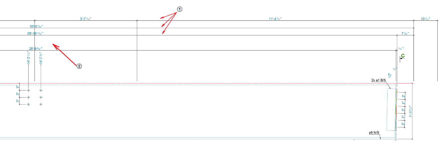 - The gap left by the deleted automatic dimension chain.
