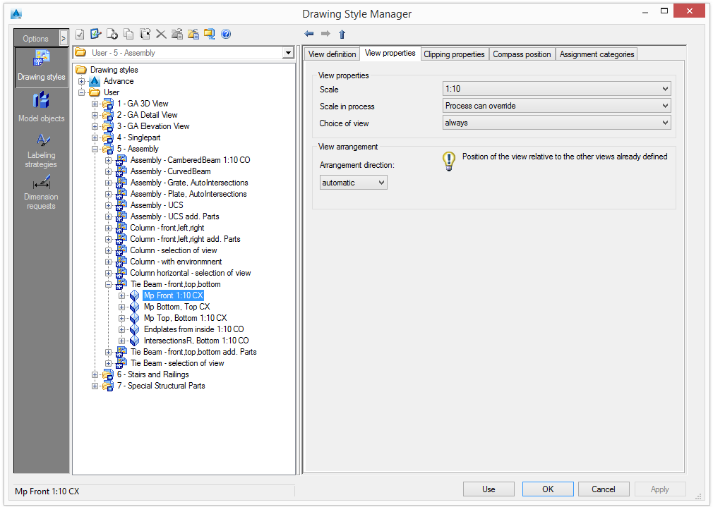 The view arrangement is important for defining the layout of the detail. The position of the view can be set relative to the position of the previously created views. The first view must always be set automatically because it is the reference for subsequent views.