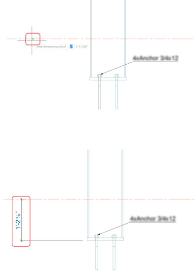Starting with Advance Steel 2019, the horizontal grid that can appear on elevation views when the "Display horizontal grid line in details" default is activated in Management Tools, provides snap points accepted by Advance Steel manual dimensions.
