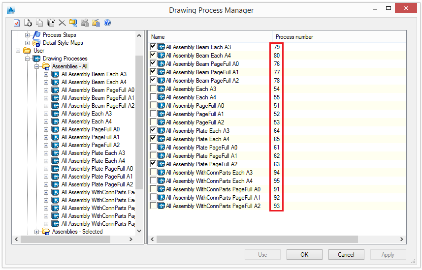You can also call processes manually, using the _AstM4CommDetailingProc User command and the process number. The process number column displays the number associated to each process.