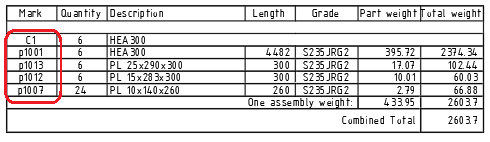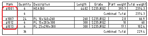 When the drawing contains both Mainpart details and Single part details, the bill of material created for the entire drawing will contain only the elements from the Mainpart detail.