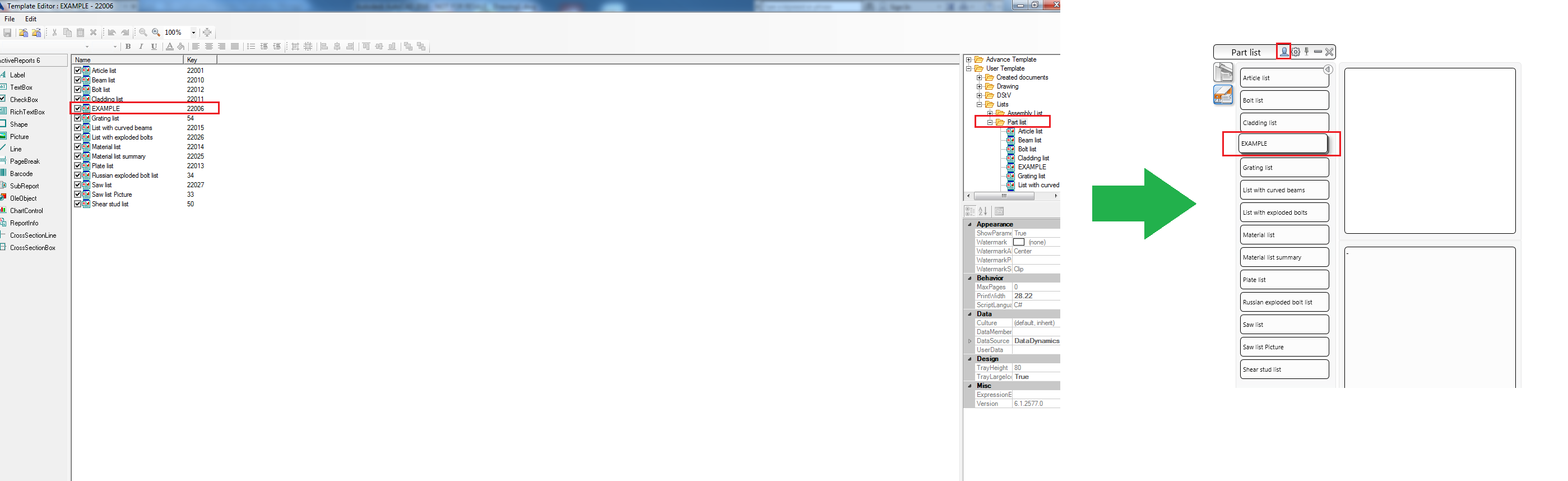 To add or remove BOM templates from the User category of BOM templates - Quick Documents palette, you need to set the status of the checkbox associated to the BOM template list in the BOM Editor.