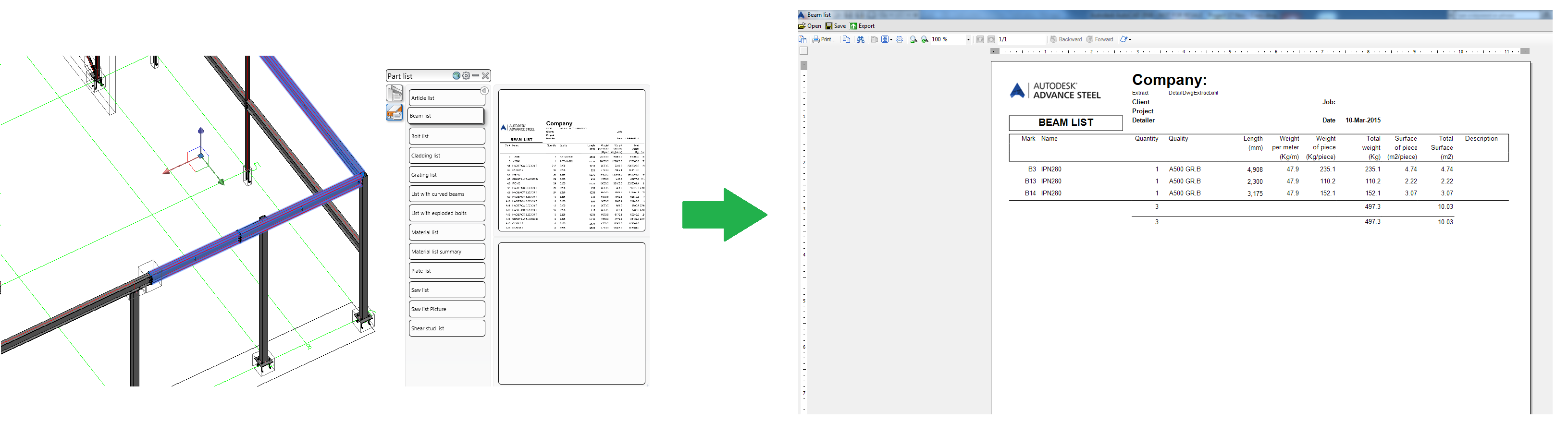 Once the list is created, it will be opened in the BOM Viewer and you can save and register it to the model.