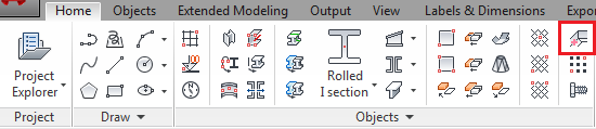 Weld points or weld lines contain the weld properties and the logical connection between connected structural parts. You create weld points as individual elements. Weld points are represented in the model by a cross, whereas weld lines are thick polylines.