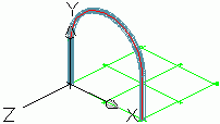 The current User Coordinate System (UCS) determines the position of the main beam axes. The curved beam web runs in the Z direction of the current UCS. The top of the section is in the Z direction. The created curved beam can rotate 90° about its system line.