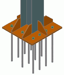 The base plate is created at the end of the column and the Base plate properties dialog appears. Modify the baseplate properties to suit specific requirements. The column and the plate are welded together.