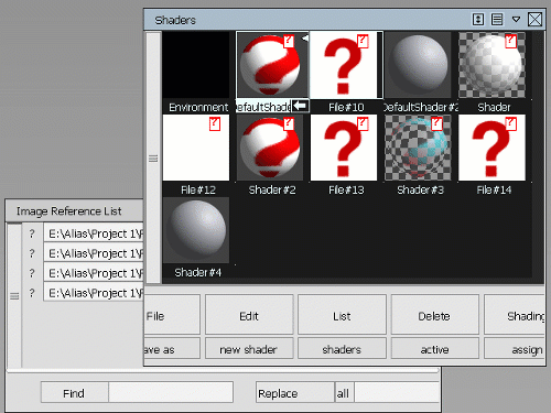 - Choose File > Image References > Image References to locate the image plane. When Alias cannot find an image plane, a small question mark appears at the left of the path name.