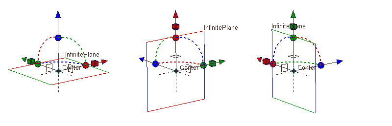 Drag the circle icon or the dotted arc to rotate the plane around the axis with the same color.