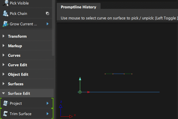 Select the surface(s) on which you want to project a curve, then click the Go button.