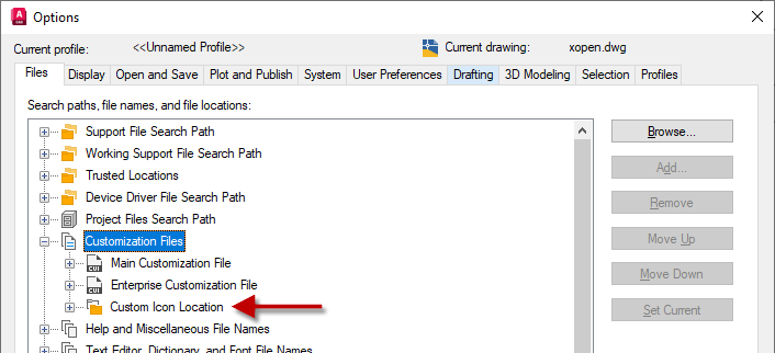 <drive>:\Users\<user profile>\AppData\Autodesk\<product version>\<release number>\<language>\Previous Version Custom Files