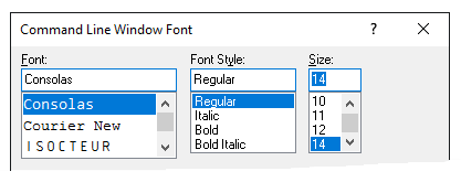 In the Command Line Window Font dialog box, change the font, font style, and size options for the text displayed in the Command and Text windows.