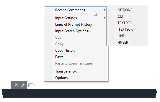 AutoCAD maintains a history of recently used commands and entered values.