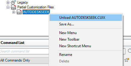 Partial CUIx files loaded into the main CUIx file are listed under the Partial Customization Files node.