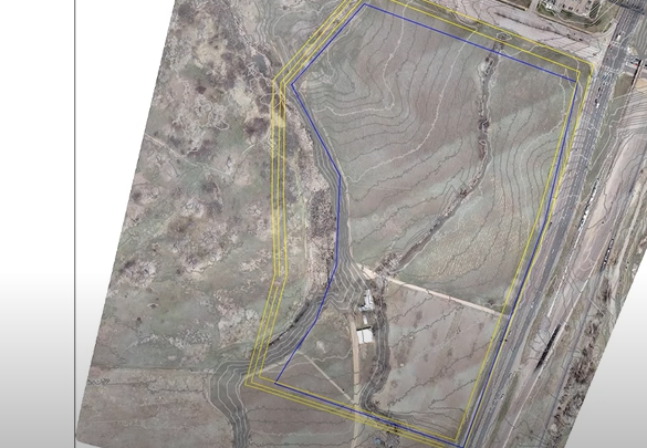 Draw basic grading information onto the topography. This information could involve drawing the outline of the grading area or defining the low point of the grading model.