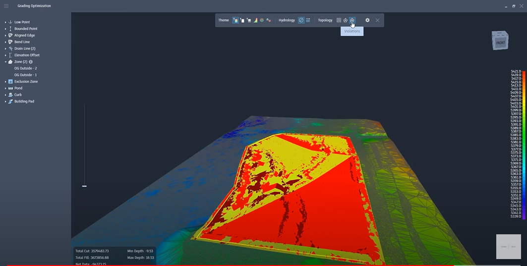 From the visualization toolbar, you can choose from the visualization themes including Violations, Cut-Fill, and Elevation.
