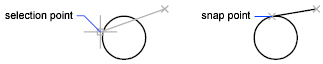 Deferred Tangent snap mode is automatically turned on when the object you are drawing requires that you complete more than one tangent snap. You can use it to draw a line or xline that is tangent to arcs, polyline arcs, or circles. When your cursor passes over a Deferred Tangent snap point, a marker and an AutoSnap tooltip are displayed.
