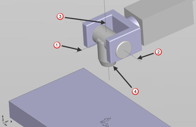 The first rotary axis for this configuration is the B axis and it is aligned with the Y axis.