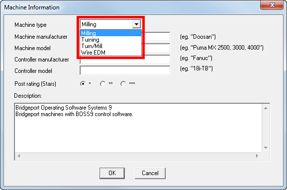 Machine Information dialog to determine the type of machine you want to create G-code for.