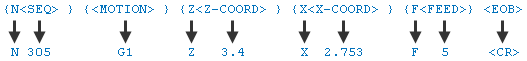A typical CNC program Linear Move format block that is output by Post might look like this: