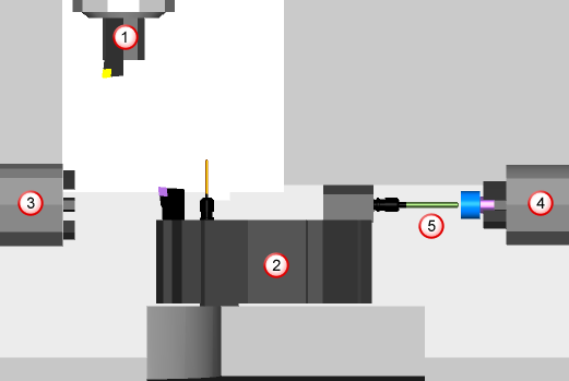 This example shows a drill tool being used to cut a Hole feature on the main spindle: