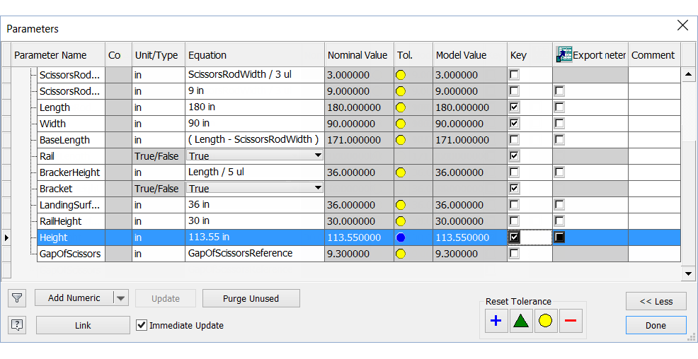 - The Key Parameters dialog box displays showing the Length key parameter previously defined. The check box to the right of the parameter name should be checked.
