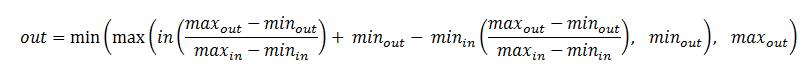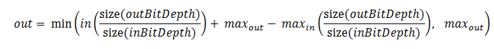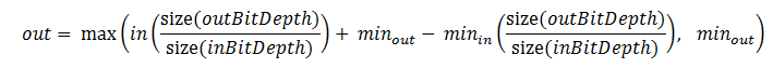 If a minInValue is present, then minOutValue must also be present and the result is clamped at the low end. Similarly, if maxInValue is present, then maxOutValue must also be present and the result is clamped at the high end. If none of minInValue, minOutValue, maxInValue, or maxOutValue are present, then the Range operator performs only bit-depth conversion.