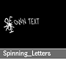 Spinning_Letters Characters thrown with a spinning effect. Edit timing using transition_ctrl settings. Experiment with transition_ctrl.scaling.Y and transition_ctrl.scaling.Z. |
