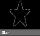 Star Text moving along a star path. Edit timing using the Animation Track Editor. |