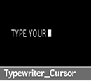 Typewriter_Cursor Text is revealed frame after frame with a cursor preceding characters. Edit timing using transition_ctrl settings. Use transition_ctrl.rotation.X and transition_ctrl.shearing.X to set the fade in duration of characters. Set as many white squares as characters in the text node. Adapt cursor kerning if needed. |