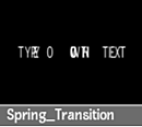 Spring_Transition Transition between two text strings with letters springing left and right. Edit timing using transition_ctrl settings. Customize the pulsing effect using period and amplitude settings |